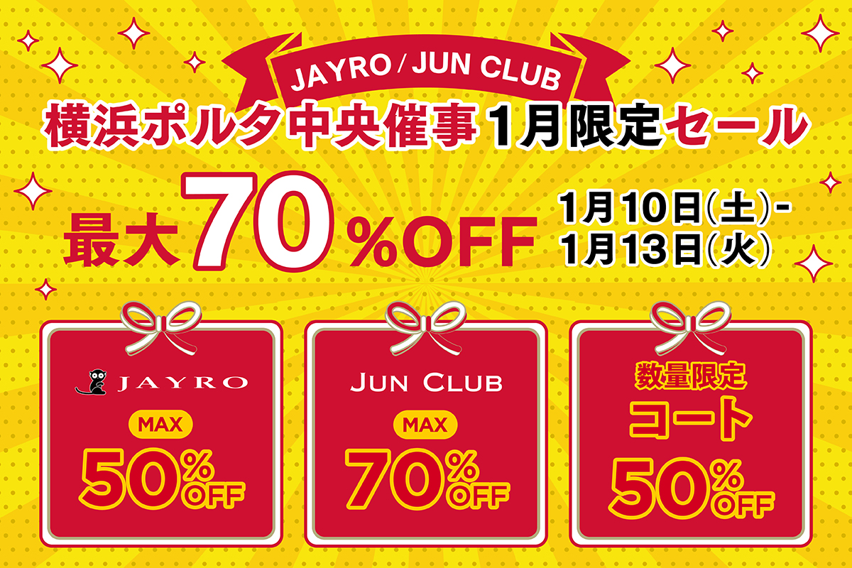【最大50%OFF】JAYRO/JUN CLUB 期間限定POP UP STORE|湘南モールフィル